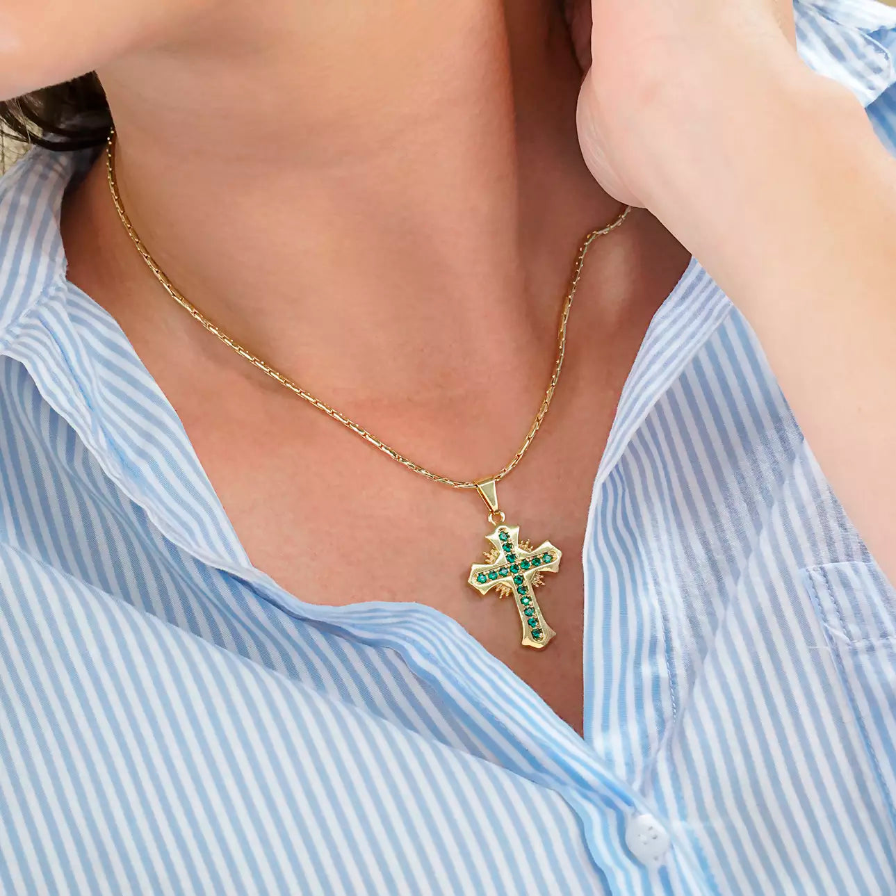 Dije Cruz Sagrada Circonias Verde