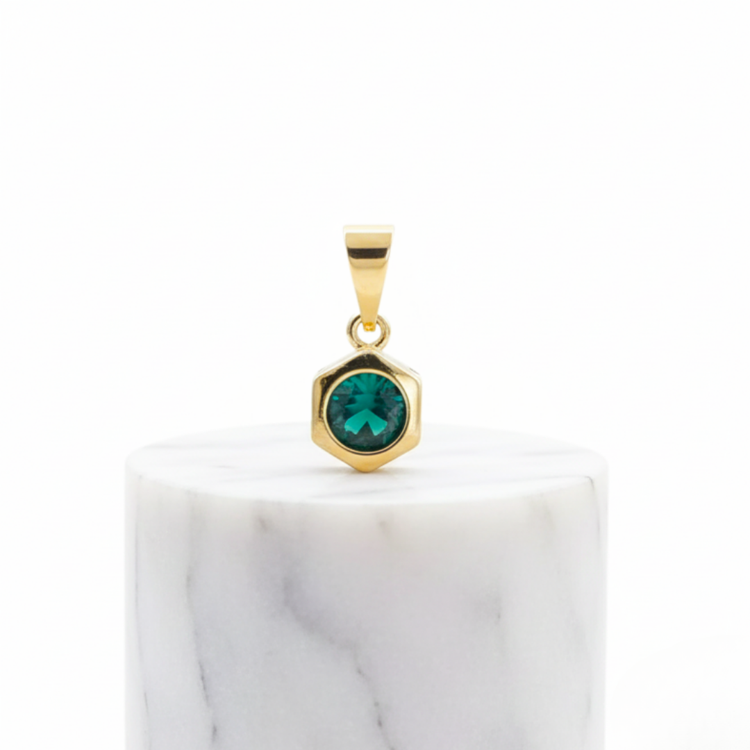 Dije Hexágono Circonia Verde