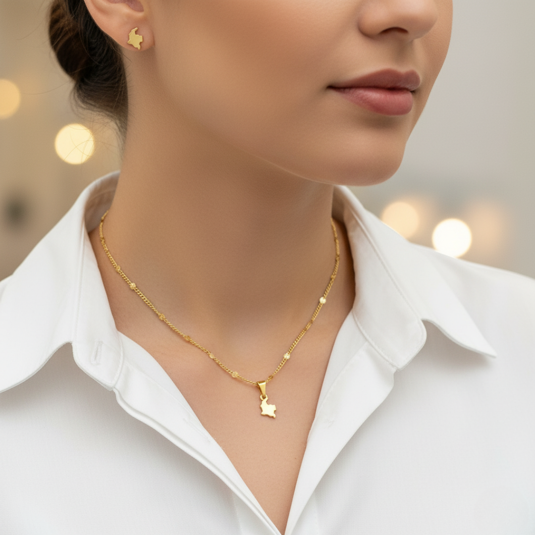 Set de cadena militar doble, dije y topitos del Mapa de Colombia